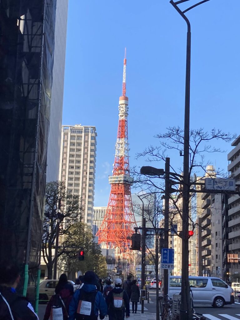 東京タワーが見えて、ようやく気持ちが上がってきた!40kmを通過。