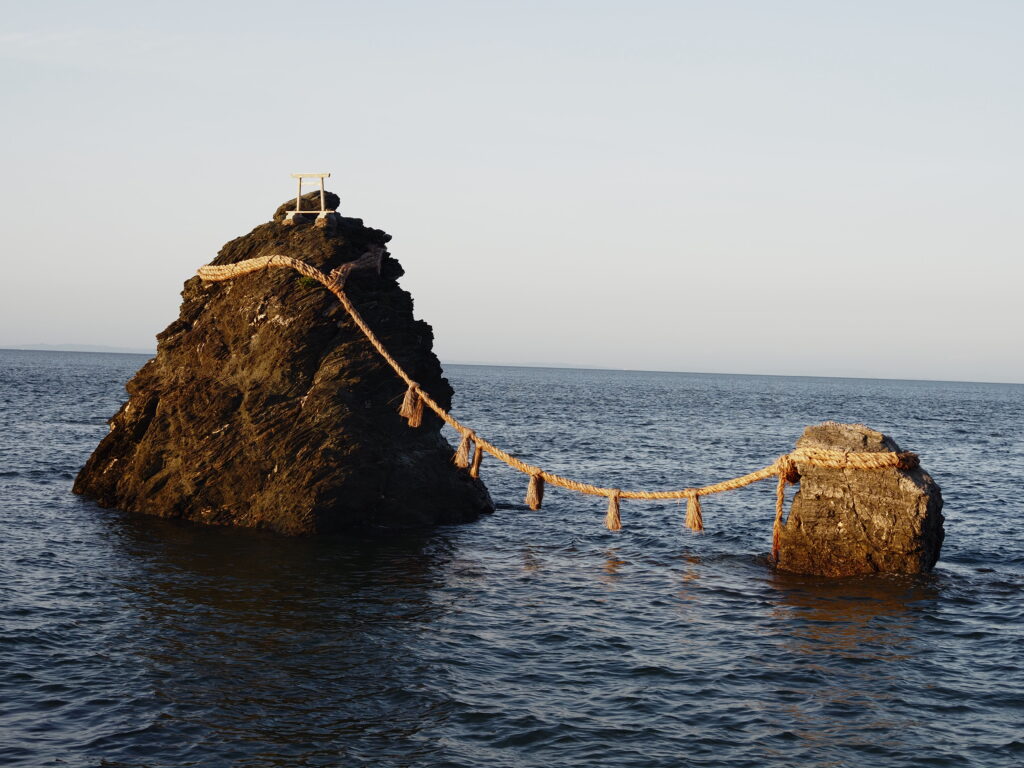 神社の奥の方へ進むと、夫婦岩が見えてくる