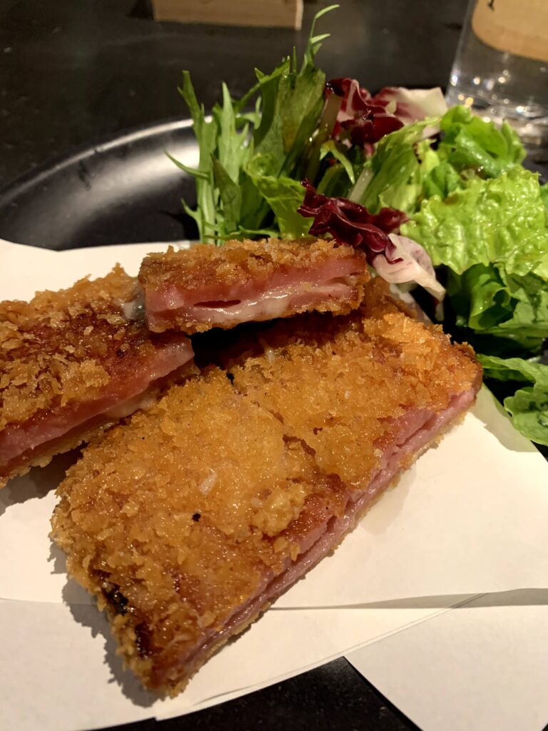 ちょっとしっかりしたものも食べたくて、ハムカツ。