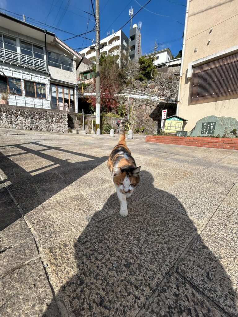 温泉の蒸気で冬でも温かいここは、地域猫にとって過ごしやすいのかも・・。