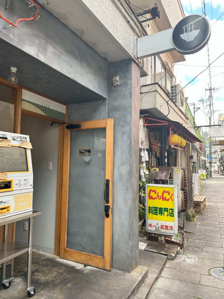 路地裏に合って昨日から気になっていたラーメン屋さん。(奥のにんにく料理が目立つけど手前がラーメン屋さんデス)