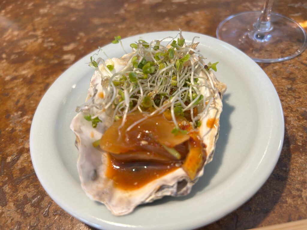 アテは美浄生牡蠣とカボスの絶品キムチ。