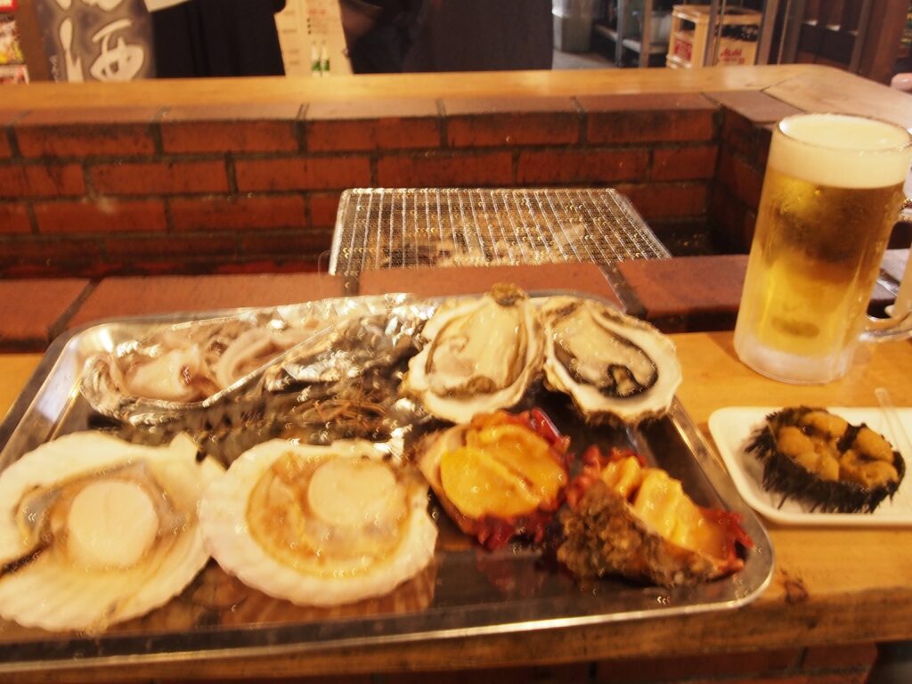 牡蠣やホタテも注文してから殻をむいてくれるので、本当に新鮮だ。