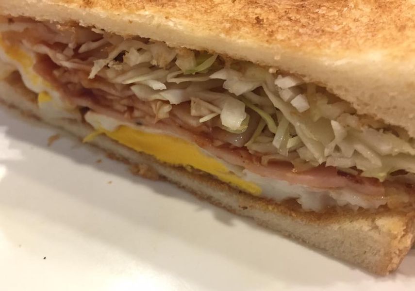 カリっと焼かれた薄手のトーストに、キャベツとハムエッグのバランスが最高だ。