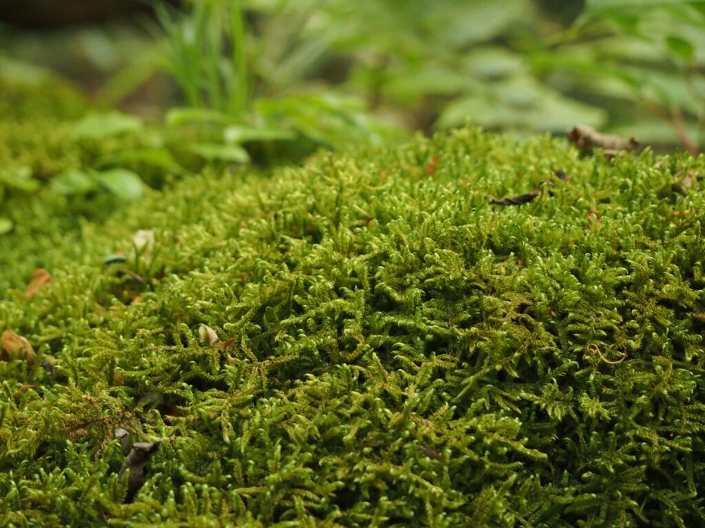岩や倒木はぎっしりと苔むして