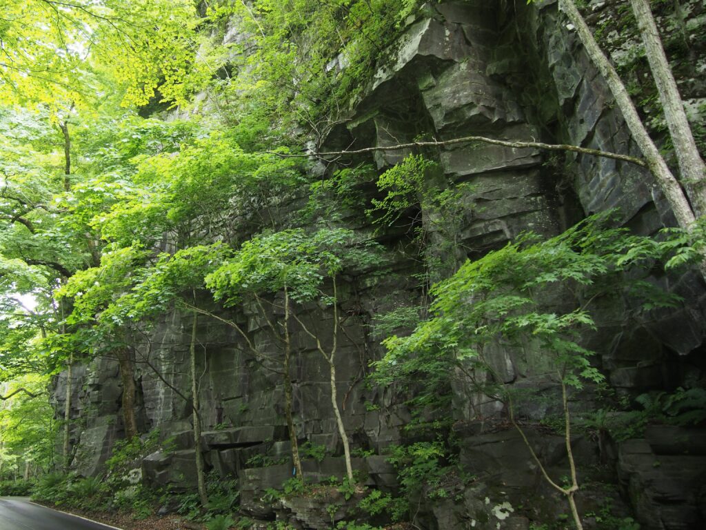 渓流にばかり気をとられるけど、岩肌もすごいな。