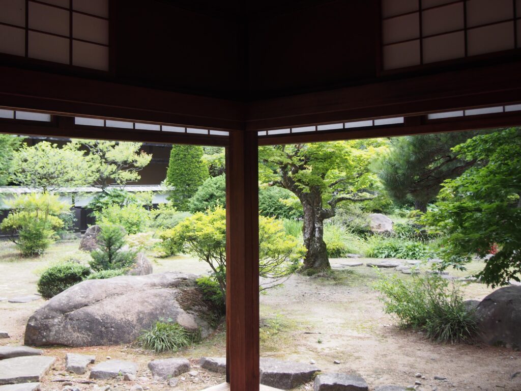 お役所の奥には、役人宅が。御居間からはきれいなお庭が。