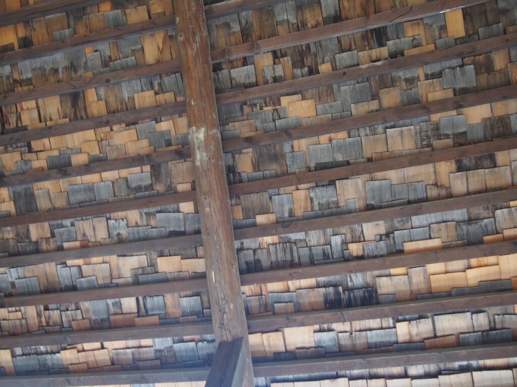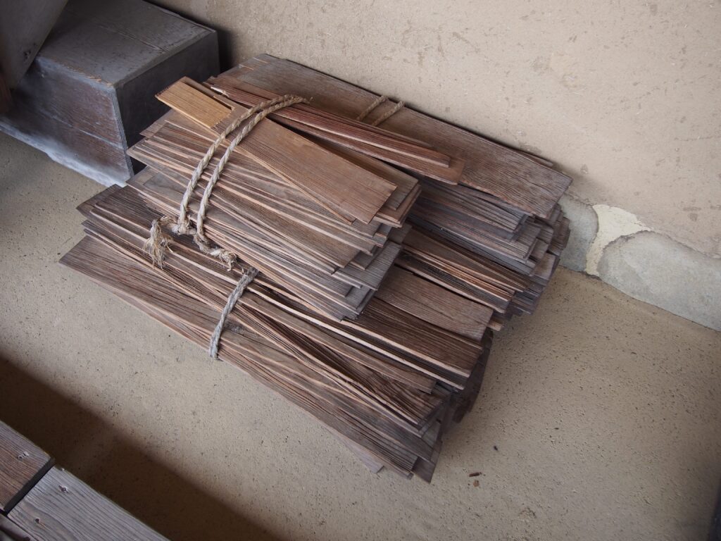 特徴的だなと思ったのが屋根。瓦葺かと思いきや板葺きだった。