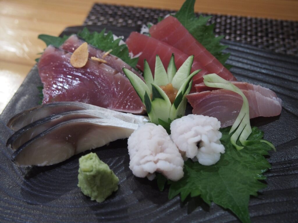 外していなかったことに心の中でガッツポーズしつつ、御造り盛合せをオーダー。