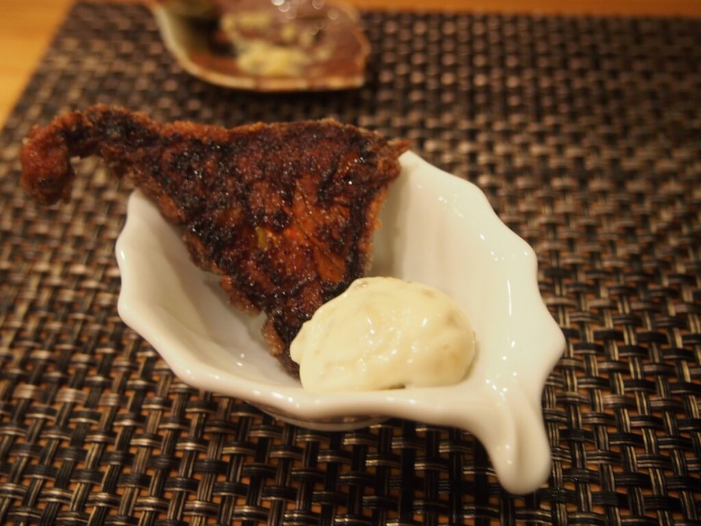 濃厚なあん肝は単体でも美味しいのに、それを酢飯と合わせて海苔で巻くなんて!めっちゃ美味しいです、とご主人にお伝えしたら「これは銀座でも食べれないでしょ」と笑ってた。