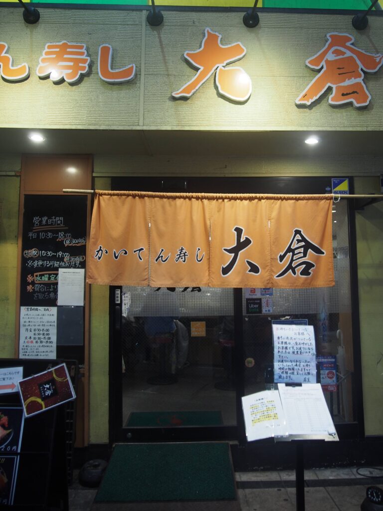 かいてん寿し「大倉」12時前だったけど15分ほど待って入店。