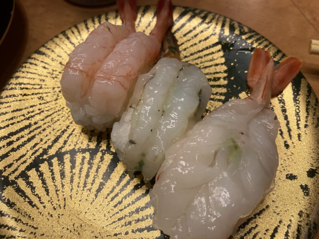 海老3点盛。甘えび、ガスエビ、ボタンエビ。