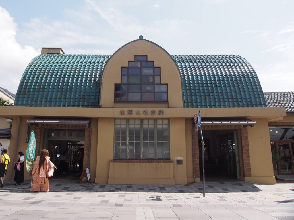 出雲大社前駅。もっと和な感じを想像していたのだけど、大正モダンといった雰囲気の駅舎。