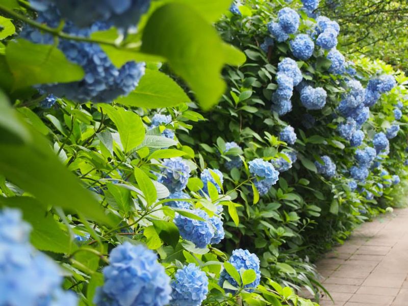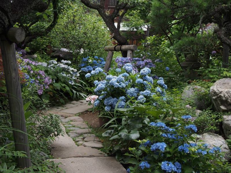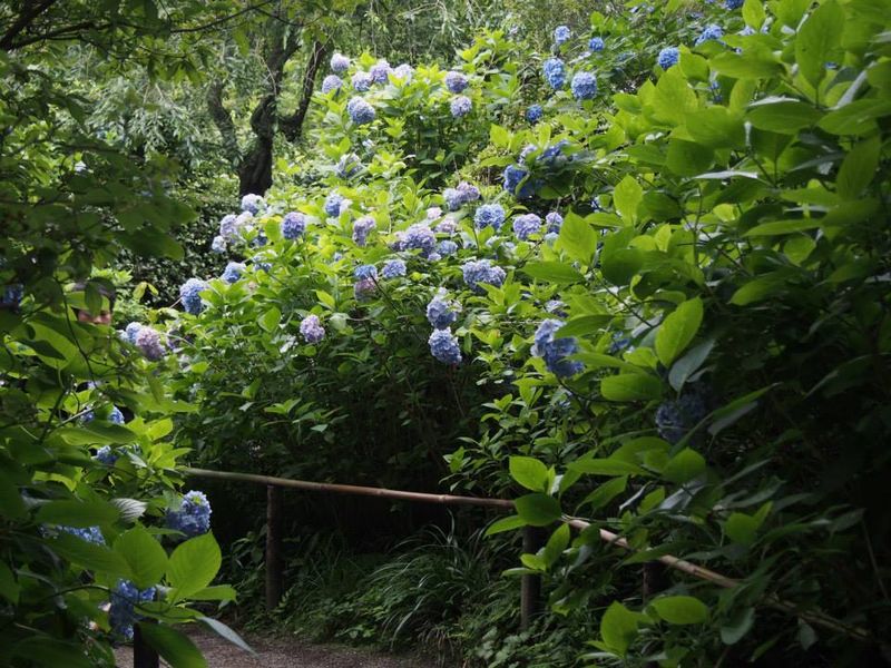 咲き乱れる淡いブルーの紫陽花に囲まれた道を巡る。