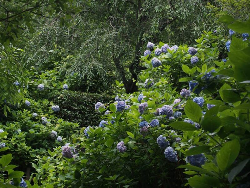 明月院の特徴は、ほとんどの紫陽花がこの柔らかな青色なこと。