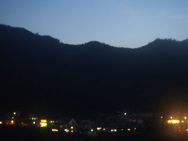 部屋からは川は見えないけど、暮れ行く山なみと町の小さな灯りがきれいだった。
