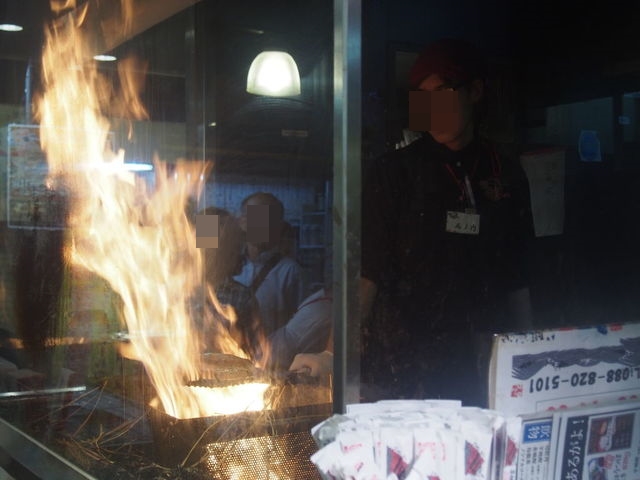 明神丸のカツオの藁焼き。豪快に炎があがるので、ついつい目が行ってしまう。