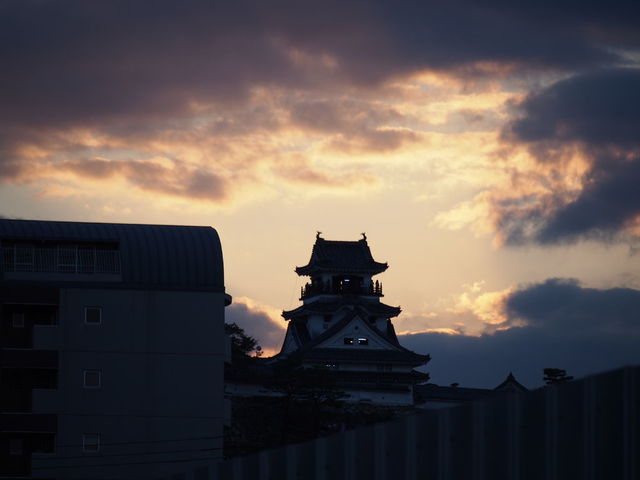 ふと顔を上げると、高知城のシルエットが見えた。