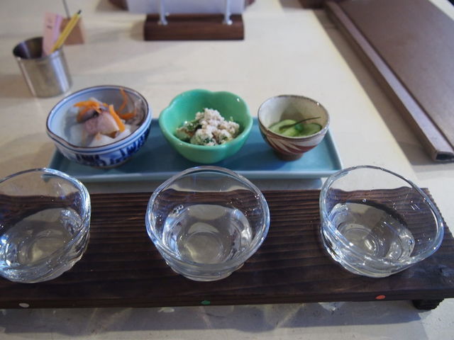 飲み比べセットとお通し。ちびりちびりといただきます。