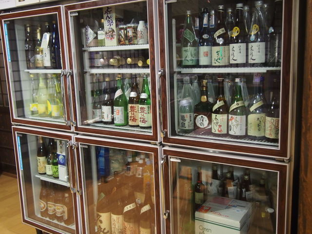 食堂にはお酒がずらりと並んでいる。