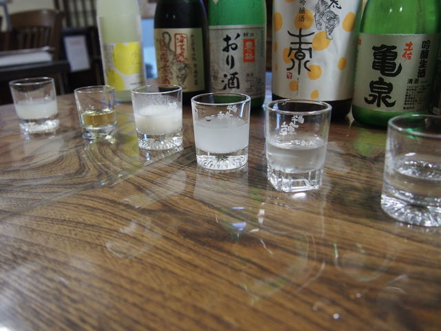 土佐のお酒を6種類。にごり酒や古酒、リキュールもあった。