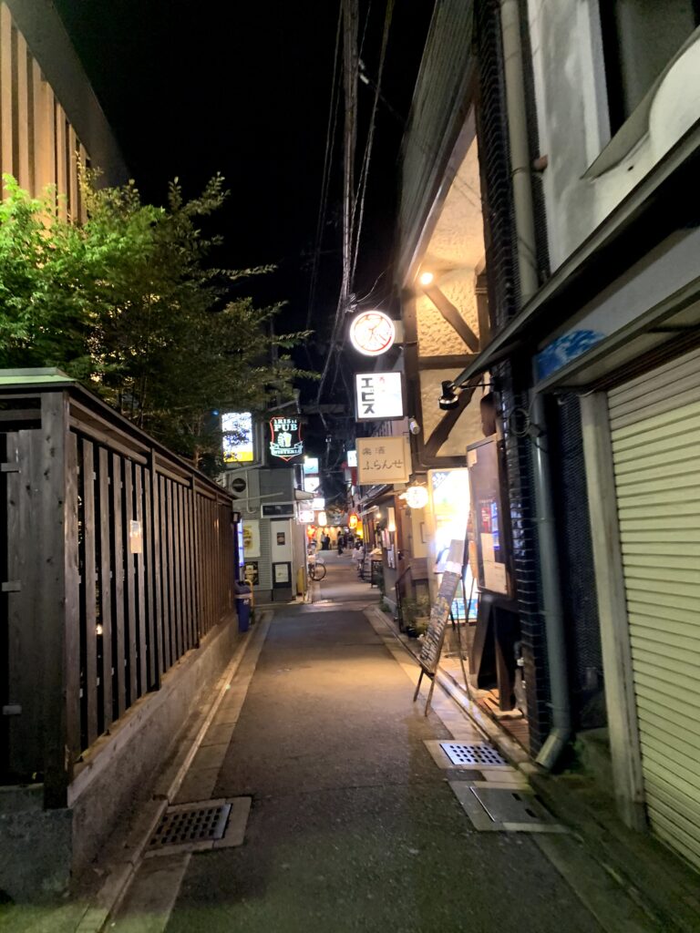 酒小路でゆっくりしすぎて、着いたのは18時頃。秋なのでもう真っ暗に。