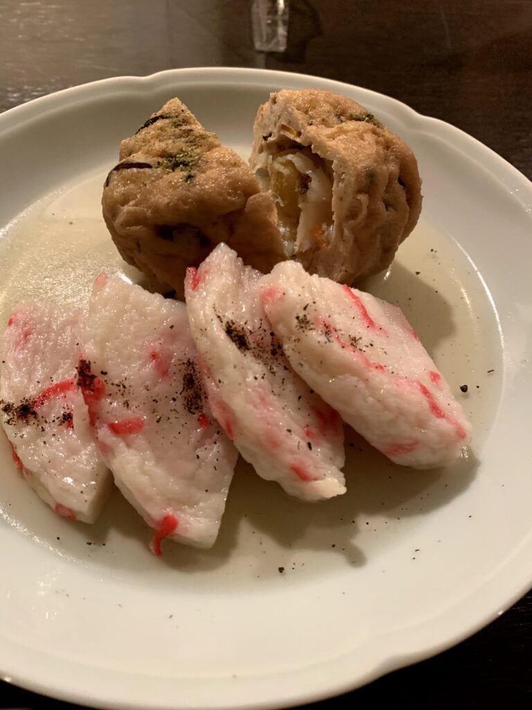 この紅しょうがの入った練り物、京特有の上品なお出汁に、黒コショウが効いていて