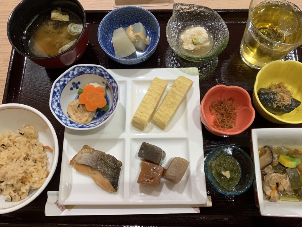 今日は和風な感じで。湯葉とかちりめん山椒が京都らしい。