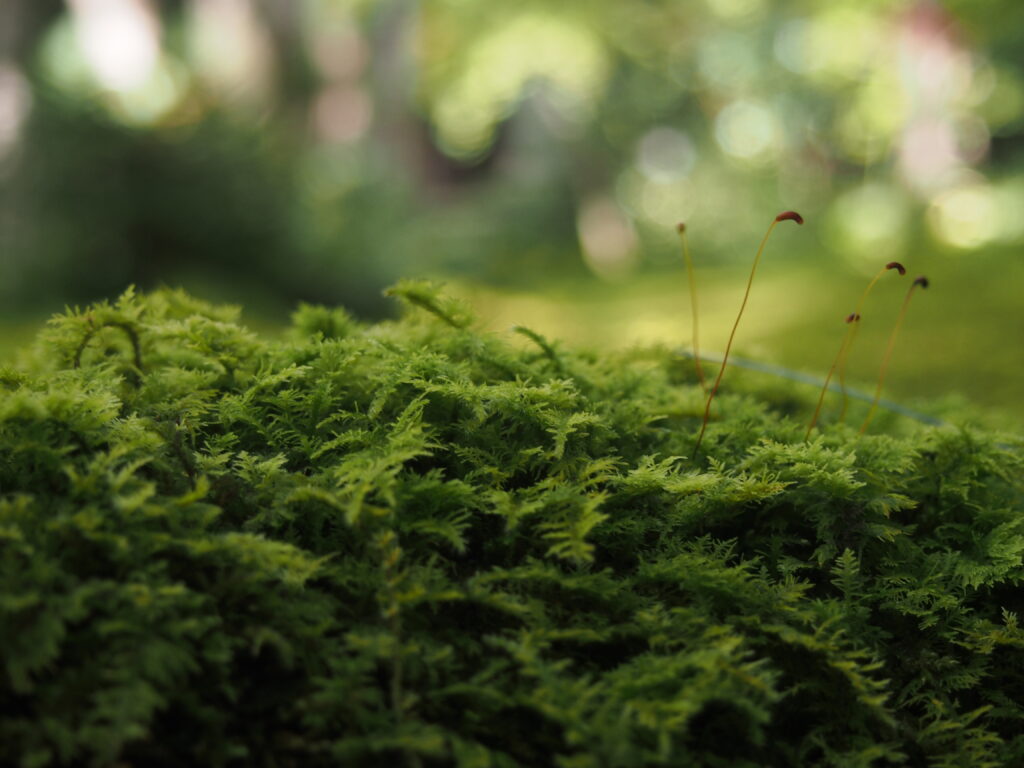 苔類は晴れた日より、曇りや小雨の日の方がきれいに見える。
