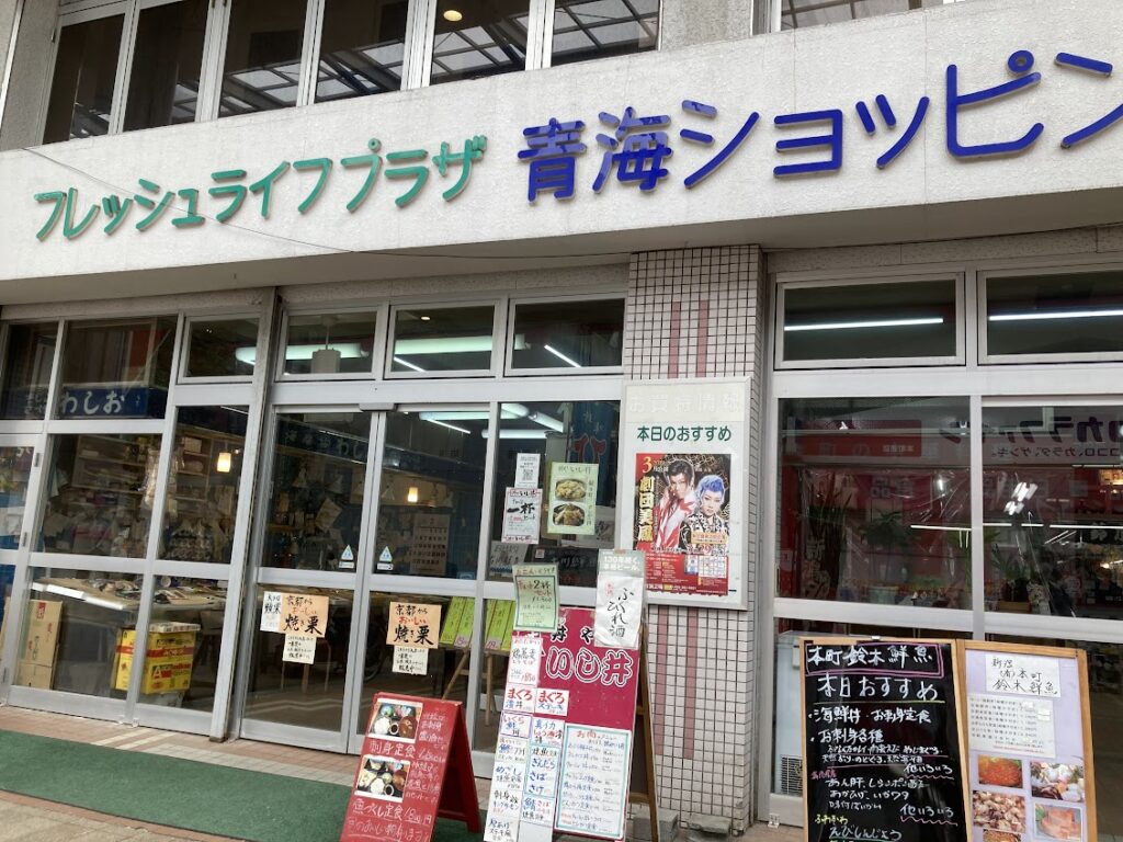 「青海ショッピングセンター」とりあえず入ってみる。市場兼横丁のような雰囲気で、お客さんの大半はおそらく地元の常連さん。