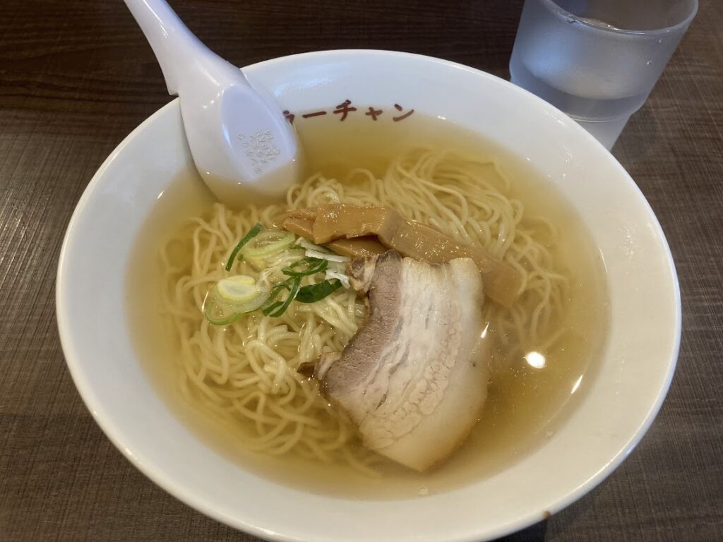 「ラーチャン」で中華そば。新潟ラーメンは大きく5種類くらいあるそうで、背油の入った燕三条系や、生姜醤油ラーメンも有名だが、こちらはかなりあっさり優しいお味。