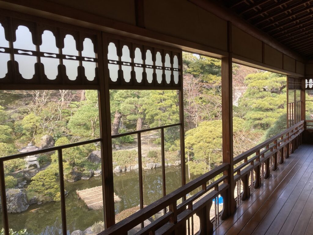 建物の欄間や板戸絵の意匠も凝っているし、お庭は起伏のある地形を生かした立体的な造りで面白い。