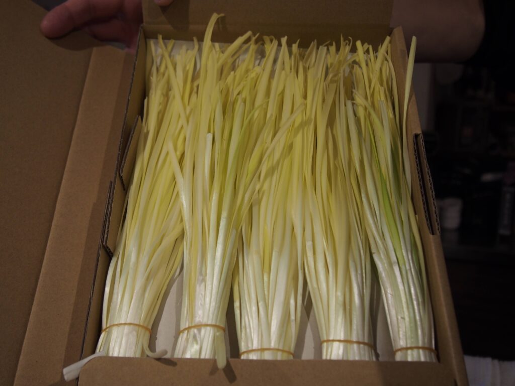 黄ニラ。関東では見かけない食材だ。通常のニラと比べて青臭さがなく上品。