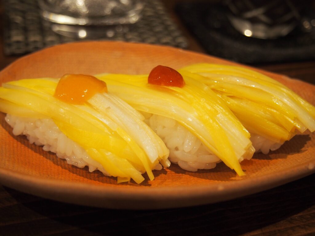 先の黄ニラの握り寿司。