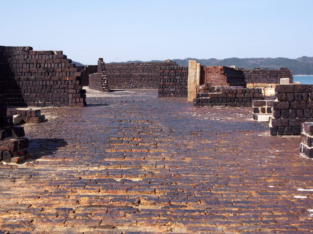 精錬の過程でできる鉄とガラスを含んだ物質で作られたレンガの上を歩く。