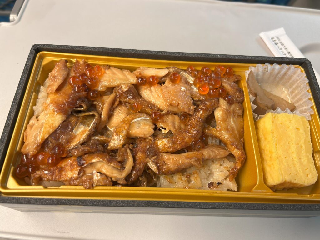今回の駅弁は鮭ハラスの蒲焼き重。