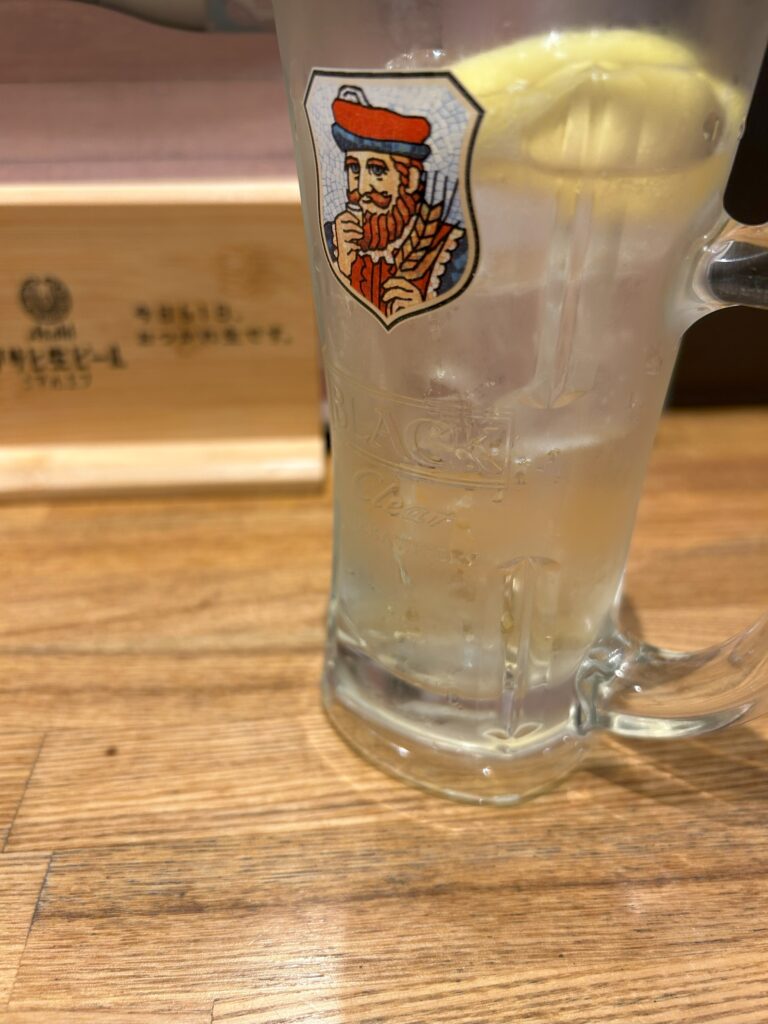 「立ち飲み 直福」さん。蒸し暑いから爽やかにレモンハイボールで乾杯!