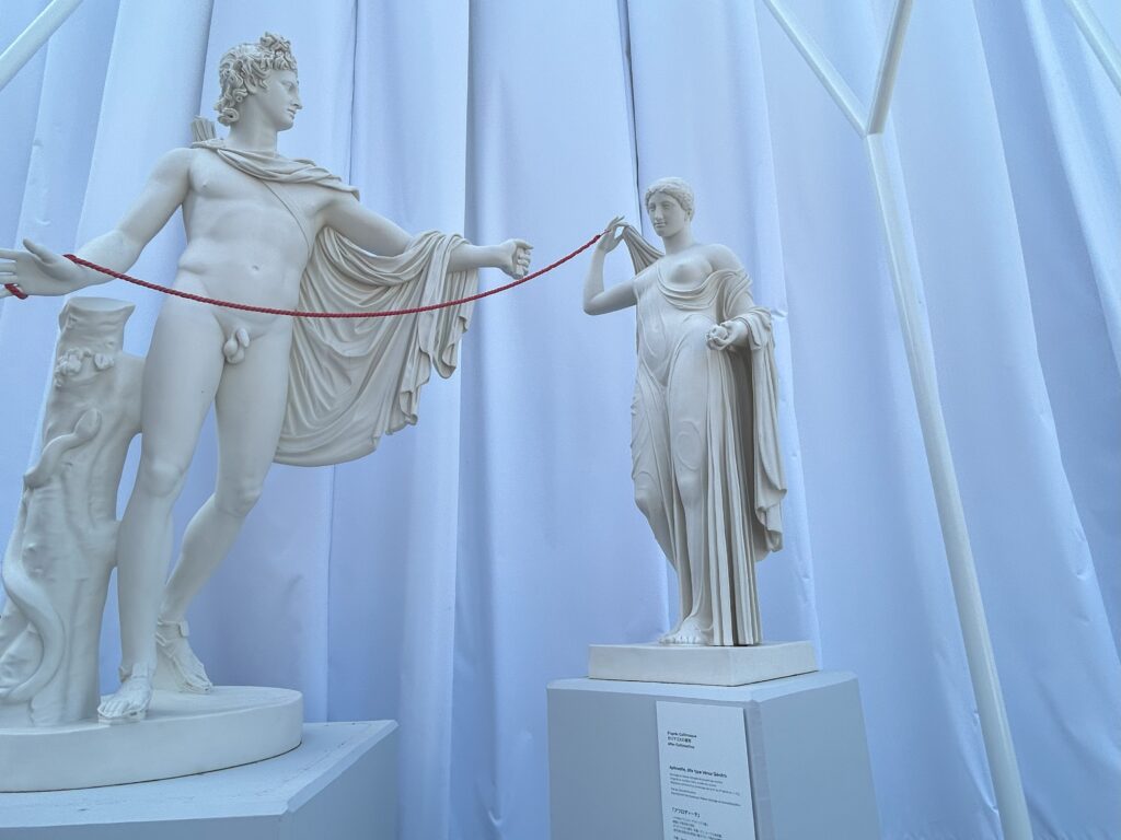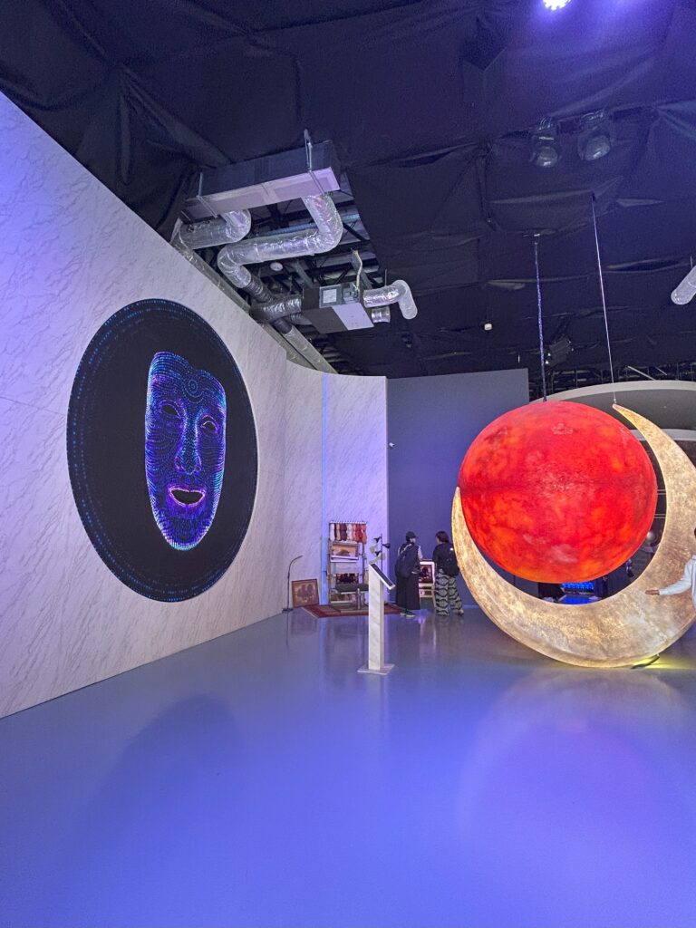 パビリオンの中、左の顔は動いていてちょっと怖い。