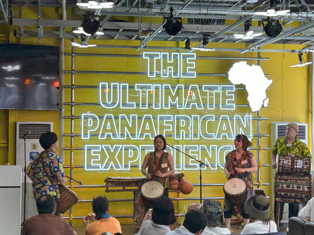 お料理とビールを楽しんでいたら、アフリカ太鼓のライブが始まった。
