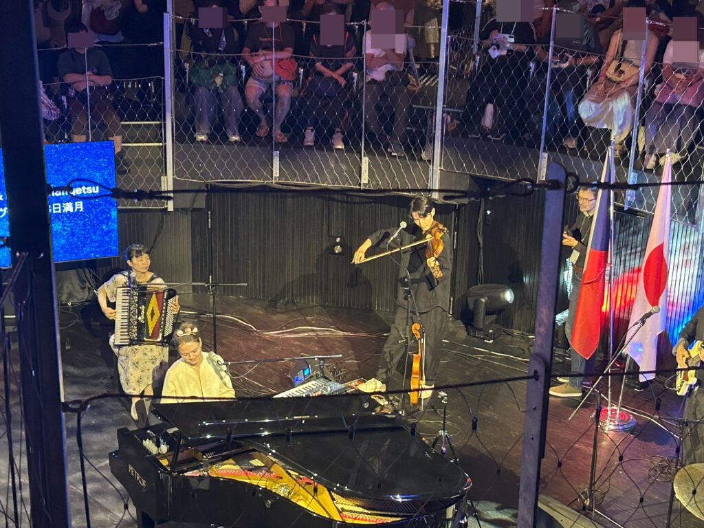 ピアノ&ボーカルとギターはチェコのアーティスト、アコーディオンとバイオリンは日本のアーティスト。こんなコラボもいいね。
