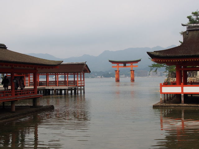 厳島神社に御参り。海の上の回廊から眺める大鳥居はやっぱり綺麗。