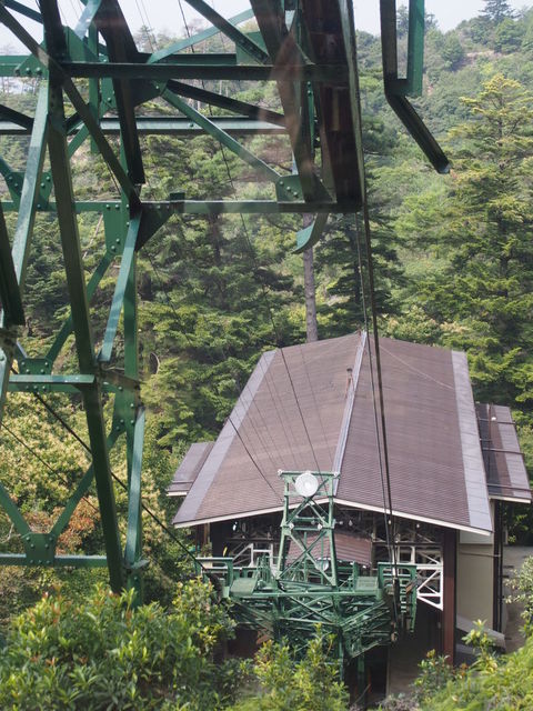 結構な急斜面をロープウェーで上がっていく。