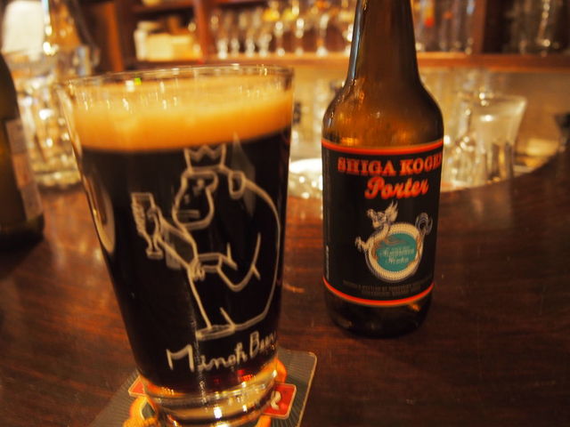 志賀高原ビールのスタウト。グラスは箕面ビールのだけど。