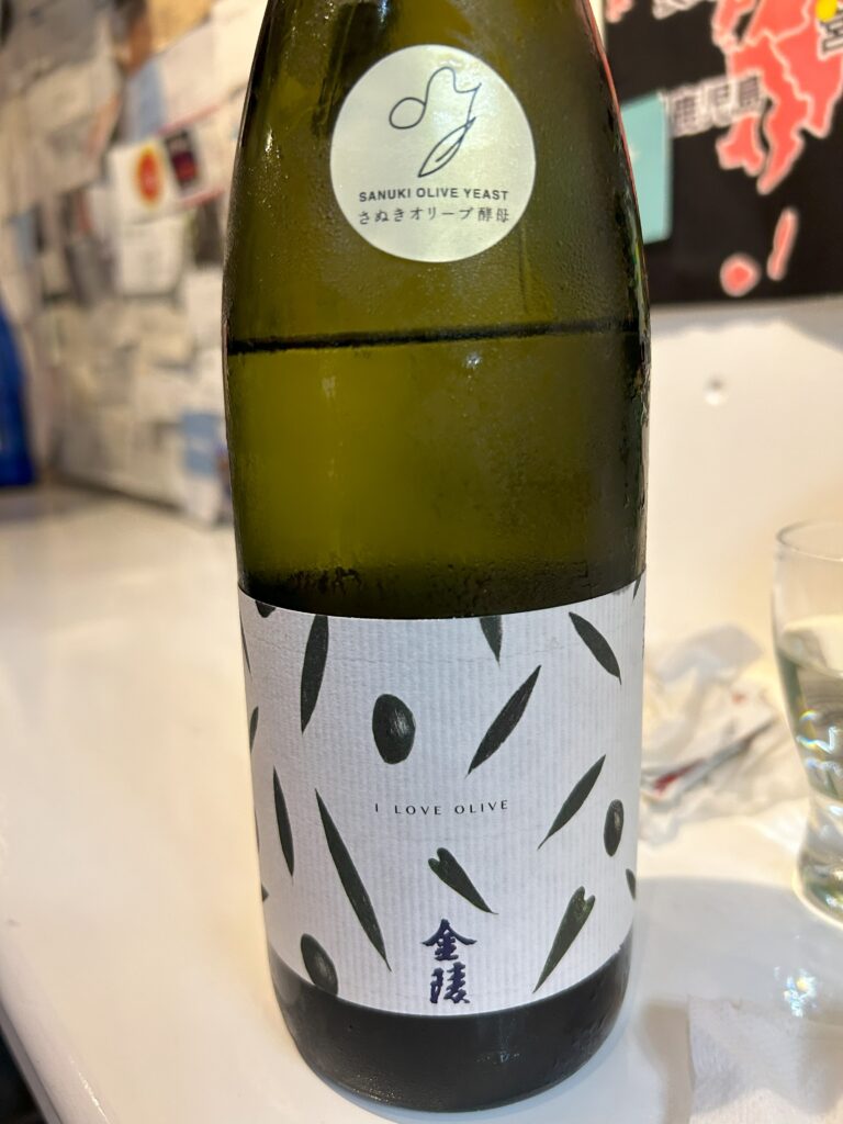 こちらも讃岐のお酒、金陵。オリーブ酵母仕様だそうで、ラベルもおしゃれ。