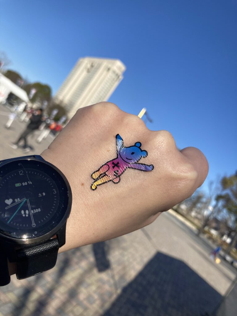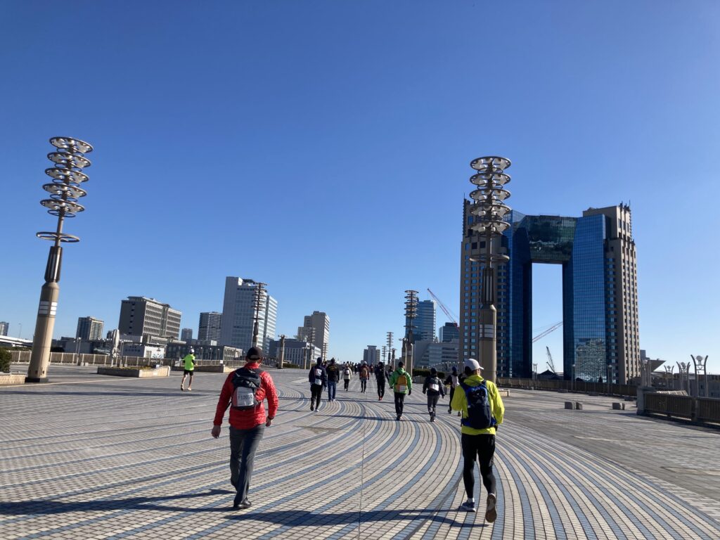 神宮の森が見えてきて、第一チェックポイントの25km地点「神宮外苑にこにこパーク」に到着!