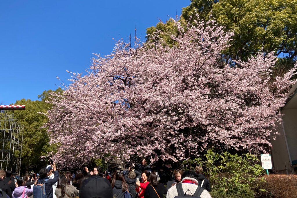 上野公園の早咲きの桜を愛でて、湯島天神の前を通り、東京ドームの方へ。