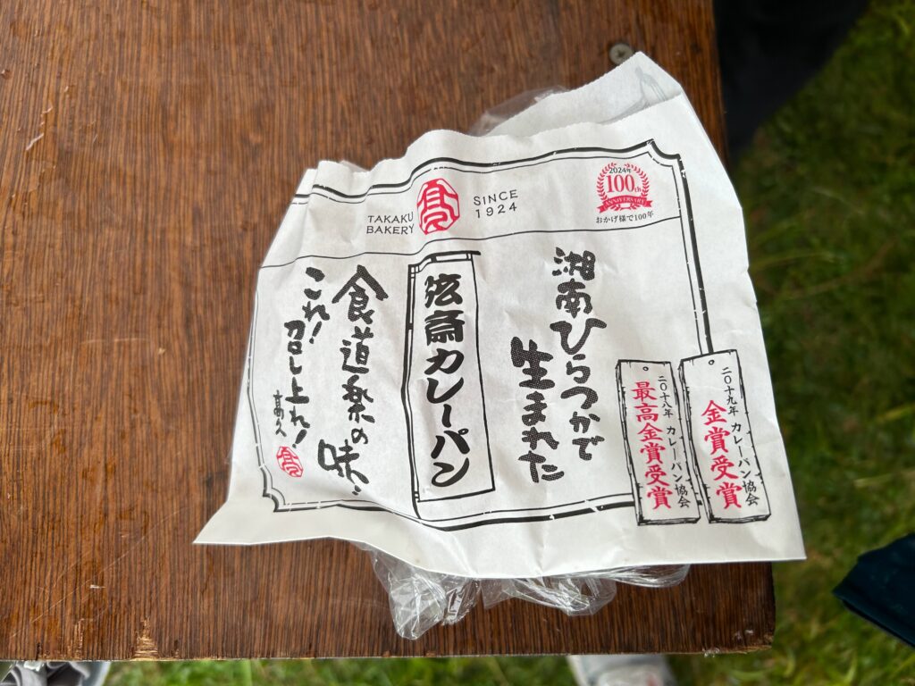 支給でもらった弦斉カレーパンをいただく。中に福神漬けが一緒に入っているカレーパン。