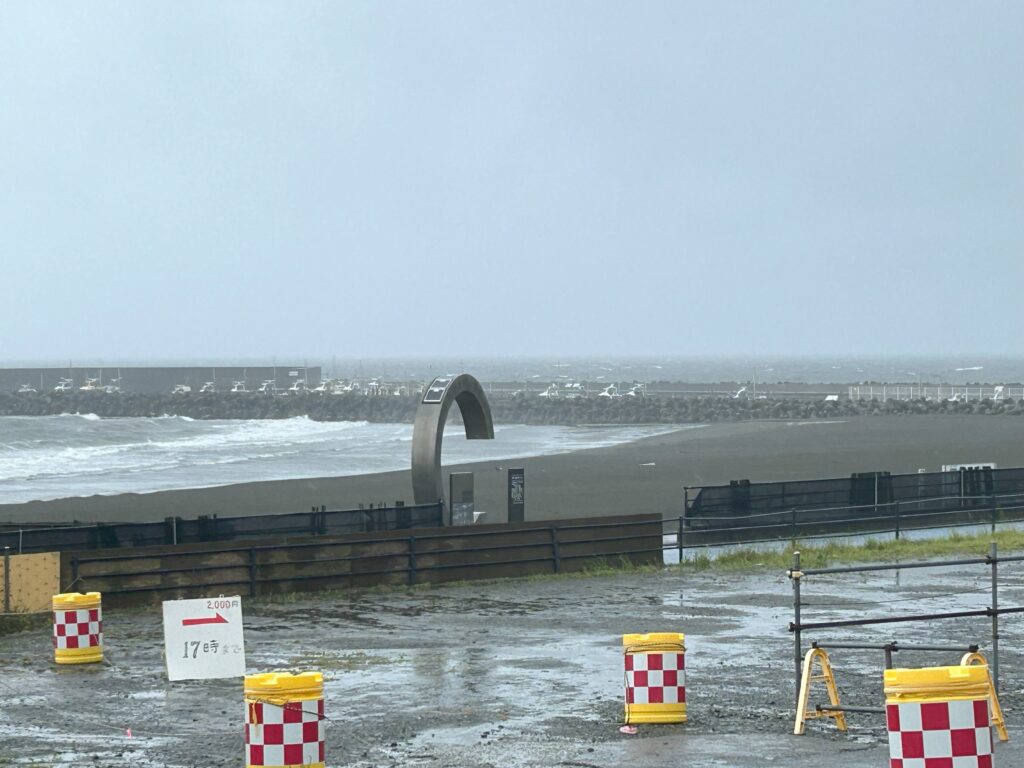 どこもかしこもびちゃびちゃなので、座ることもできず。