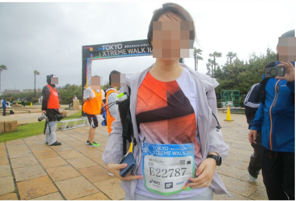 腕がちゃんと振れる方が歩きやすいだろうと判断して、スタート前に傘を荷物にしまう。