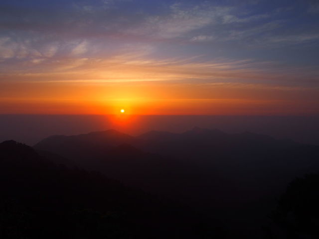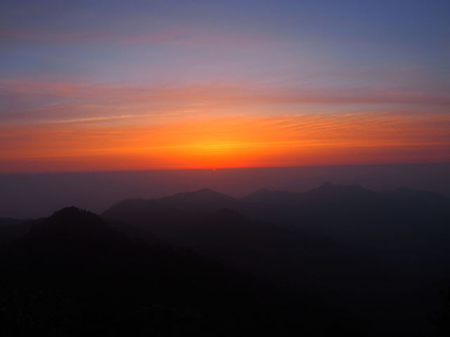 いくつもの稜線が重なる、その向こう側に水平線が見える。